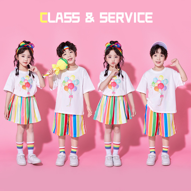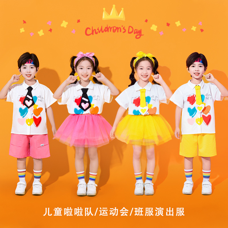 Pakaian Pertunjukan Pemandu Sorak Hari Anak Setelan Kelas Pertunjukan Lengan Pendek Balon Warna Siswa Sekolah Dasar Musim Panas