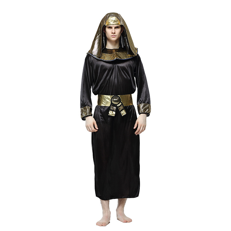 Kostum firaun pria dewasa, kostum pertunjukan cosplay Halloween, pakaian pendeta cosplay topeng