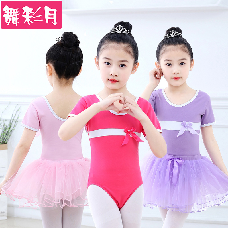 Pakaian dansa Anak perempuan lengan pendek, rok balet, pakaian dansa China, ROK latihan penampilan anak-anak, pakaian dansa musim panas, baju anak perempuan