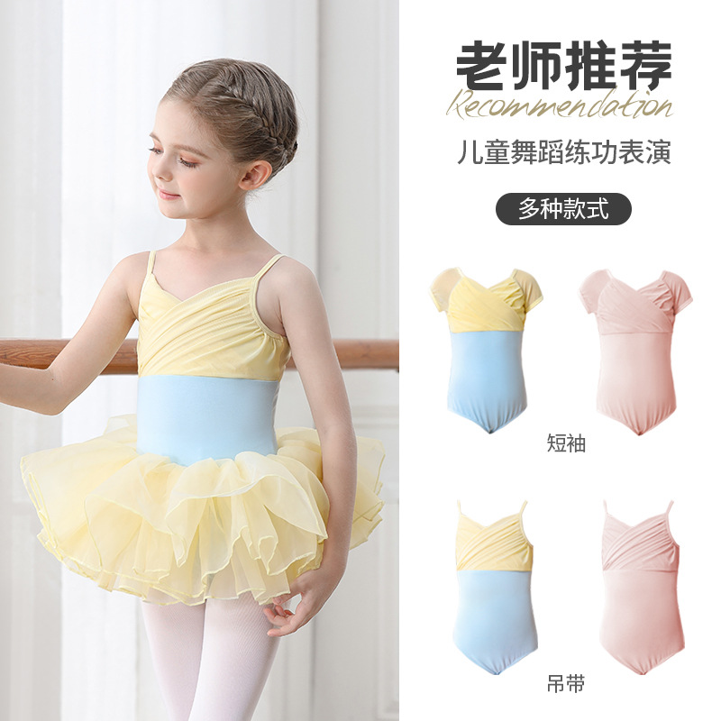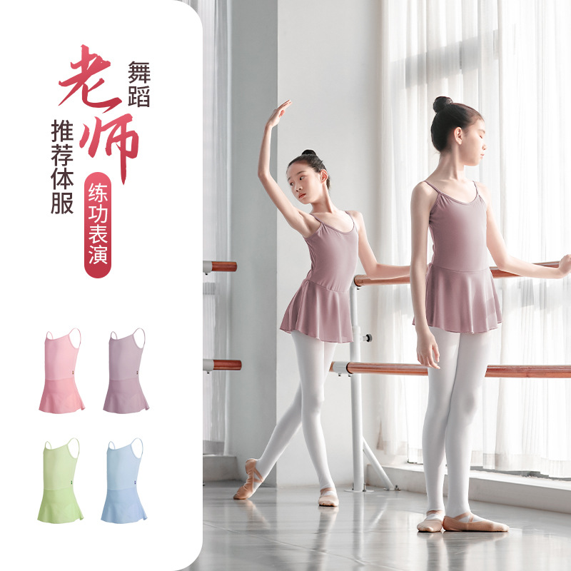 Pakaian Tari Anak-anak Model Baru Musim Panas Pakaian Latihan Tali Gantung Pakaian Senam Anak Perempuan Rok Balet Jumpsuit Pakaian Tubuh Menari