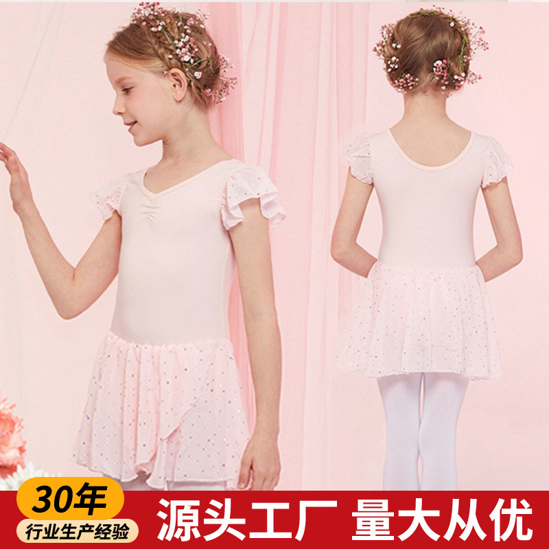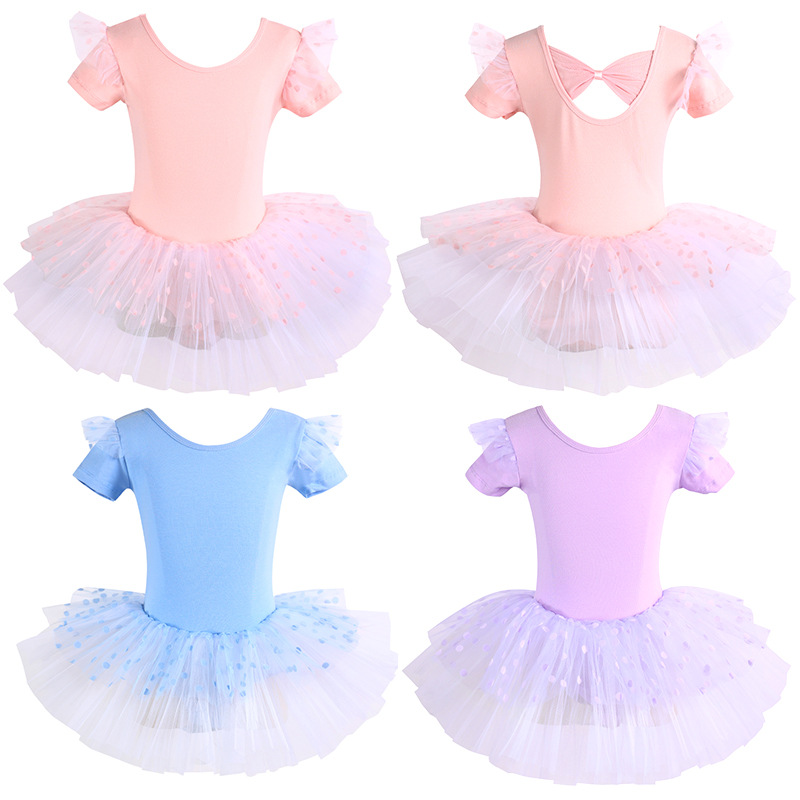 Baju dansa Anak perempuan lengan pendek, baju dansa anak perempuan musim panas, baju latihan anak-anak lengan pendek, baju kasa balet satu potong