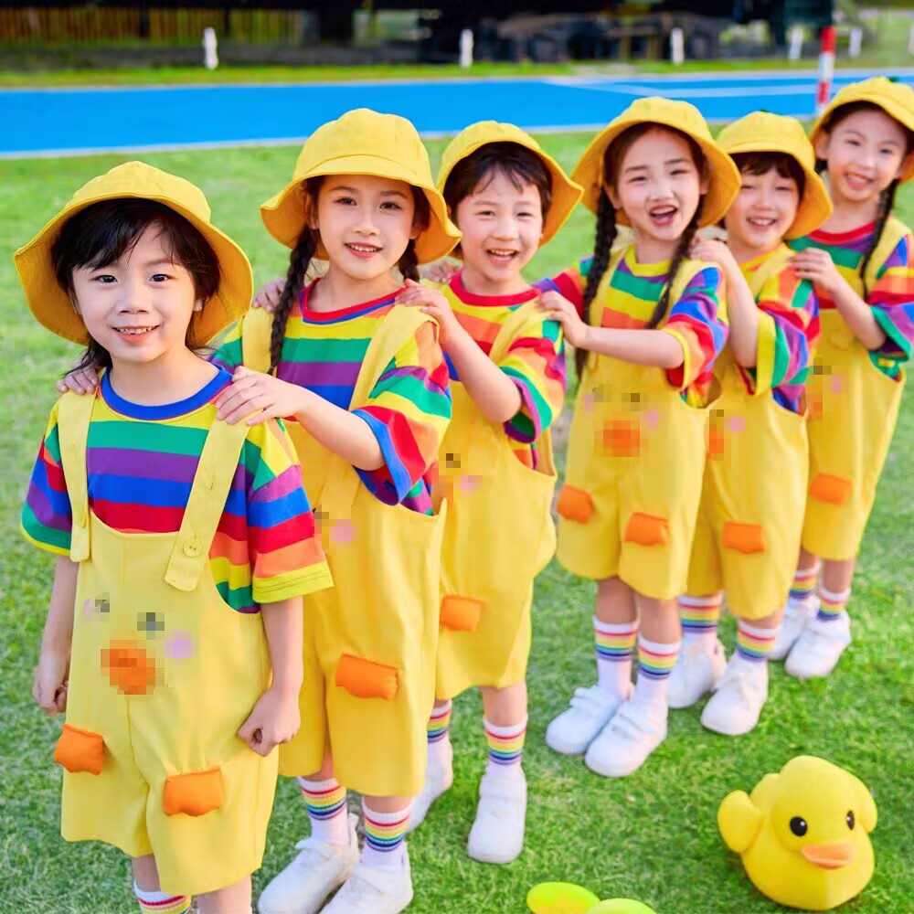 Setelan Pakaian Pertunjukan Anak Enam Puluh Satu Warna Pelangi Lucu Bebek Kuning Kecil Celana Berikat Pakaian Pertunjukan Taman Kanak-kanak Warna Permen