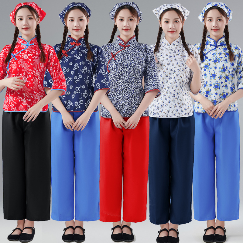 Atasan Panggung Dewasa Aqingyu Kostum Bibi Desa Yangge Kostum Bunga Petik Teh Wanita Retro Nasional Pakaian Republik Wanita