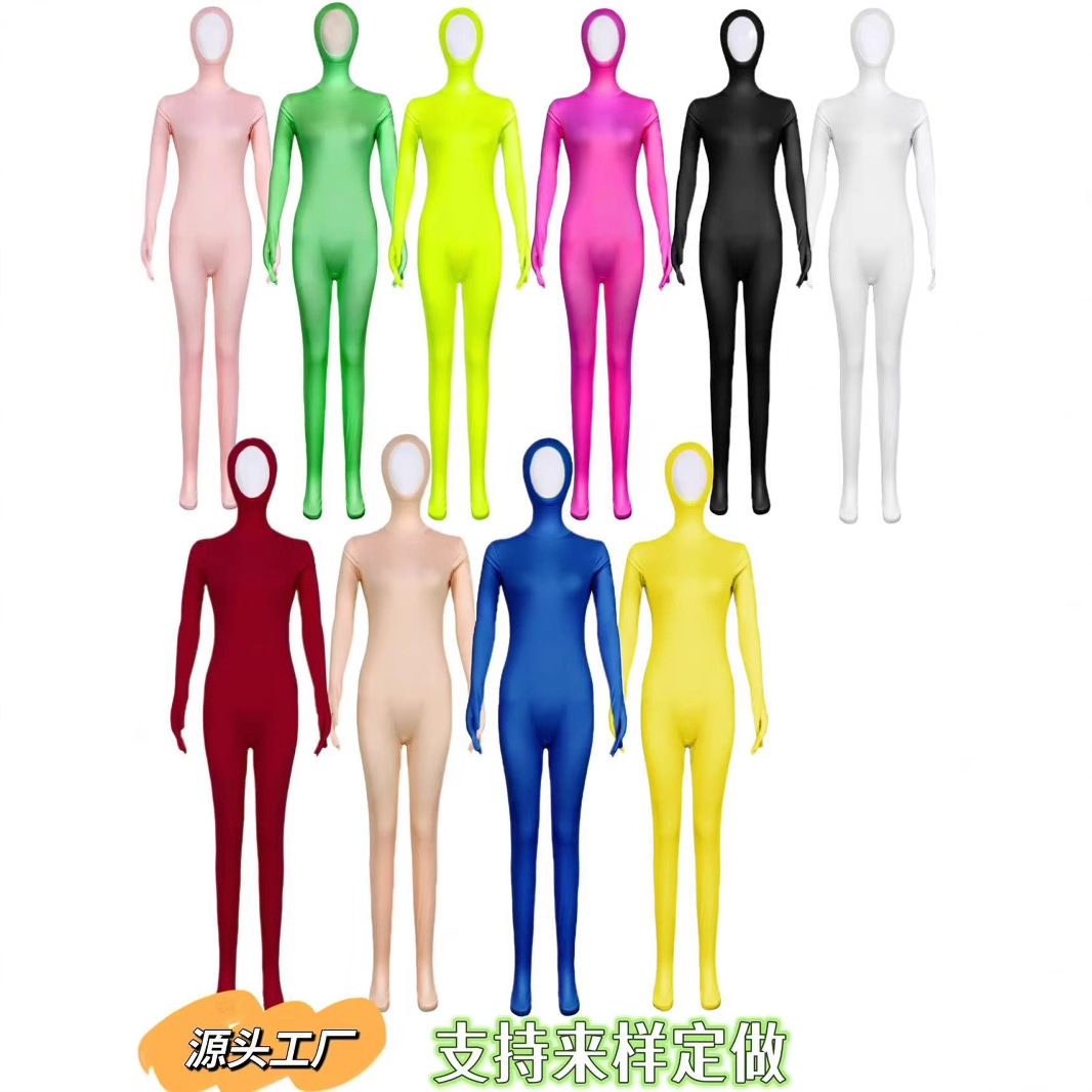 Produk Baru Lintas Batas Pakaian Ketat Seluruh Tubuh Seluruh Tubuh Pakaian Jumpsuit Kepala Bocor Zentai Pakaian Warna Solid Pakaian Pertunjukan Panggung Wajah Terbuka