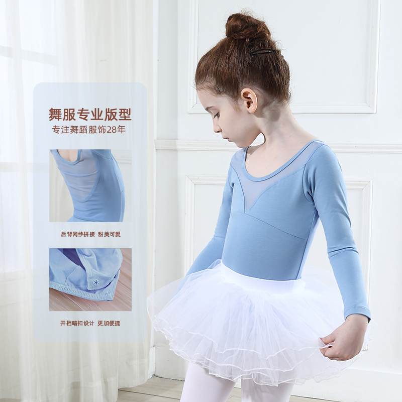 Pakaian dansa anak-anak, pakaian latihan musim gugur dan musim dingin rok menari lengan panjang baju dansa China rok performa pettiskirt balet