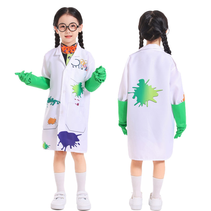 Pakaian Pertunjukan Mantel Putih Anak-Anak Ilmuwan Gila COS Pakaian Pertunjukan Panggung Bermain Peran Profesional Frankenstein