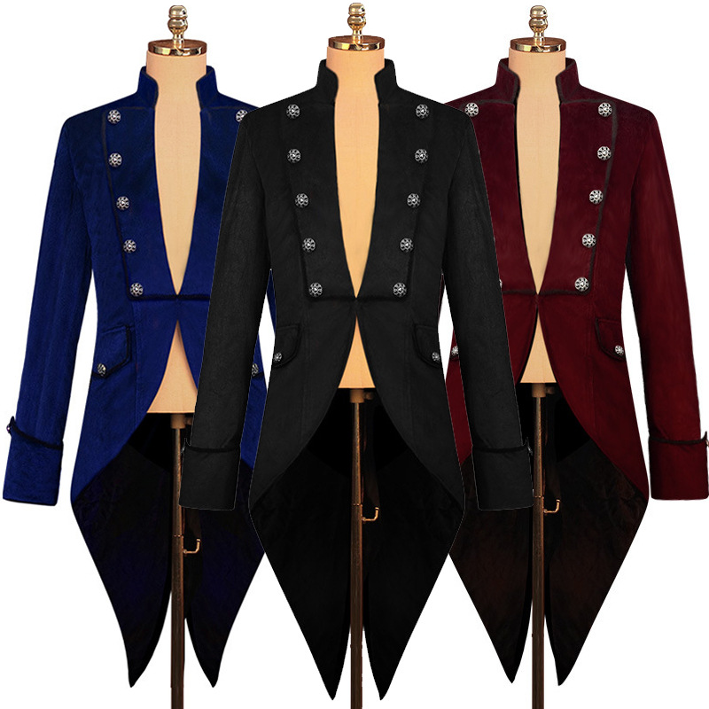 Amazon kostum mantel pria punk pakaian retro abad pertengahan Eropa dan Amerika tuksedo Halloween baru