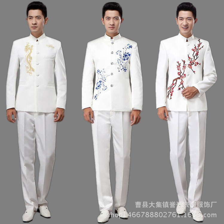 Kostum chorus porselen biru dan putih pria dewasa setelan band kostum penampilan musik rakyat pakaian kostum pertunjukan