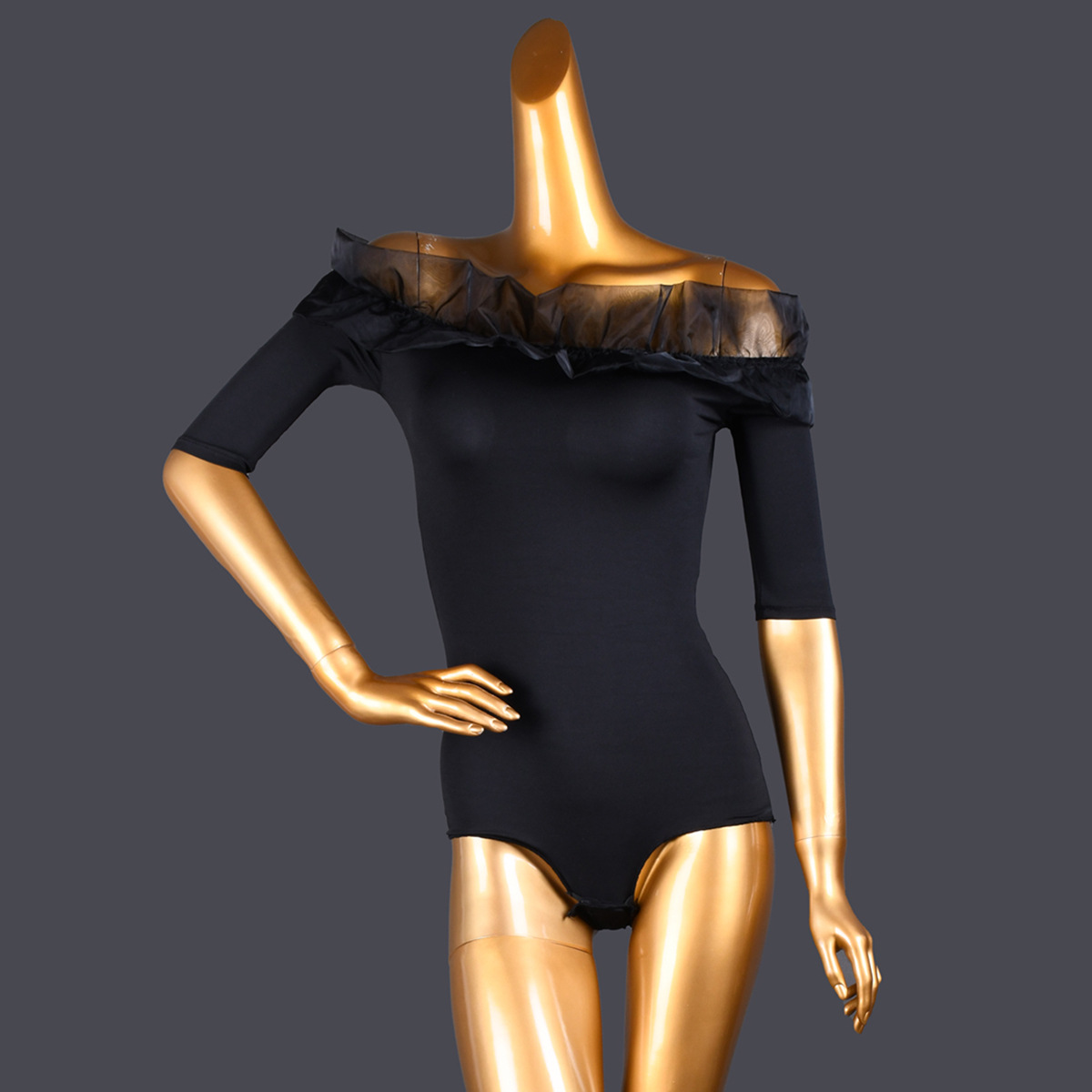 Baju dansa Latin Atasan Dewasa lengan sedang, baju dansa modern kerah bundar, pakaian latihan dansa wanita warna hitam