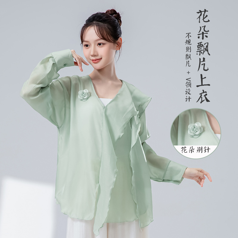 Pakaian Latihan Tari Klasik Pakaian Kasa Model Baru Wanita Pakaian Tari Bunga Peri Mengambang Film Atasan Pertunjukan Tari Tiongkok