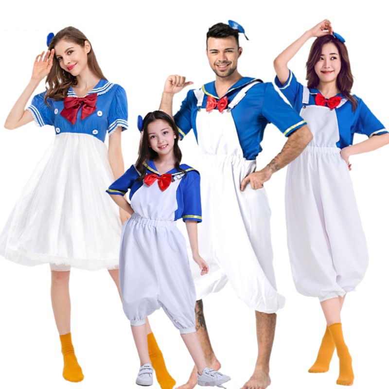 Setelan pelaut cosplay bebek kecil lucu anak-anak dewasa baru setelan kartun bebek biru laut pakaian orang tua-anak