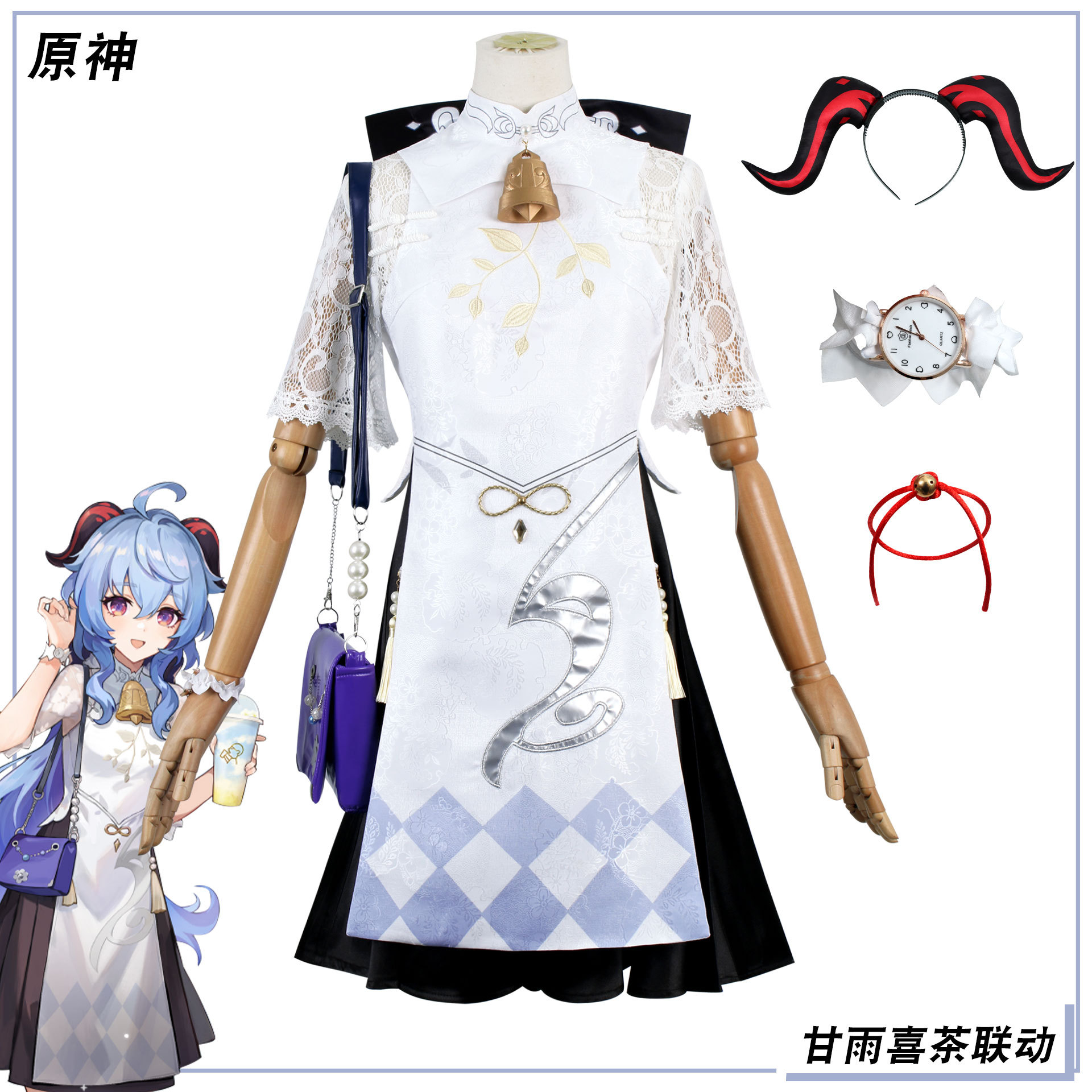 Dewa asli cos Xi tea linkage manis hujan bordir permainan anime bermain manis hujan Shenhe pakaian cosplay Halloween