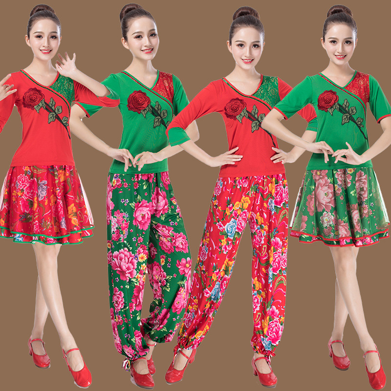 Shenyi kostum dansa etnik persegi untuk wanita, kostum tari setengah baya dan lansia, kostum satu bunga