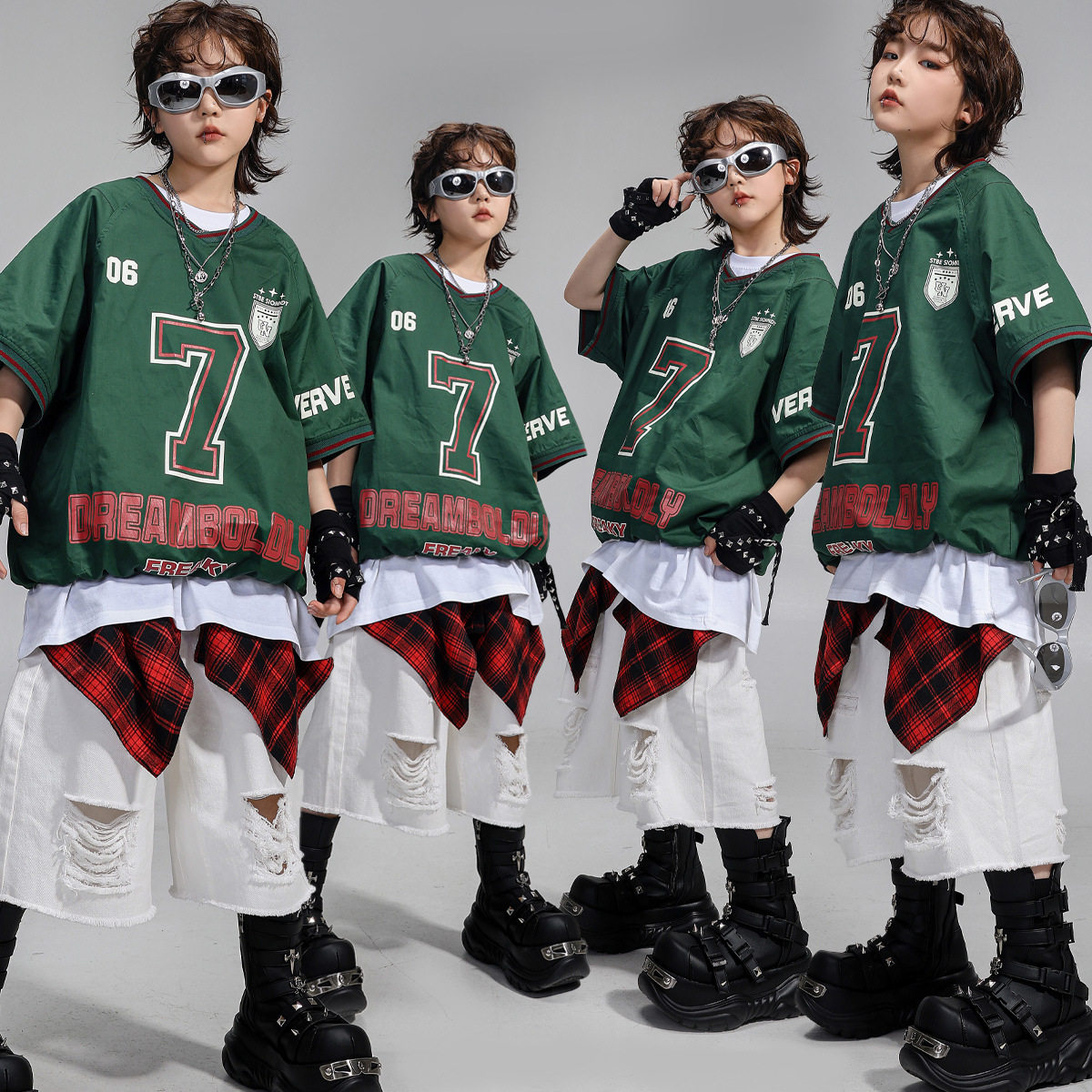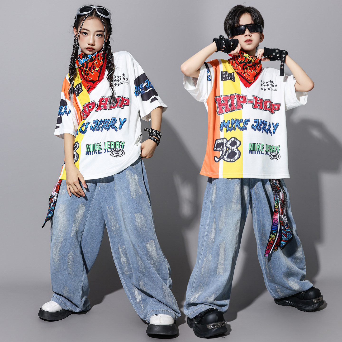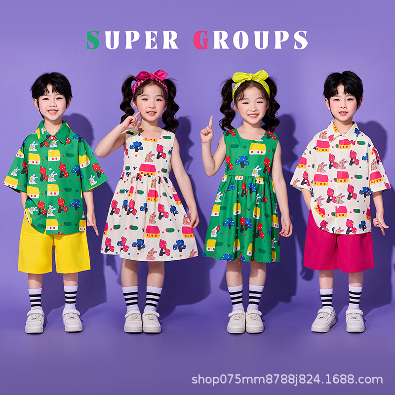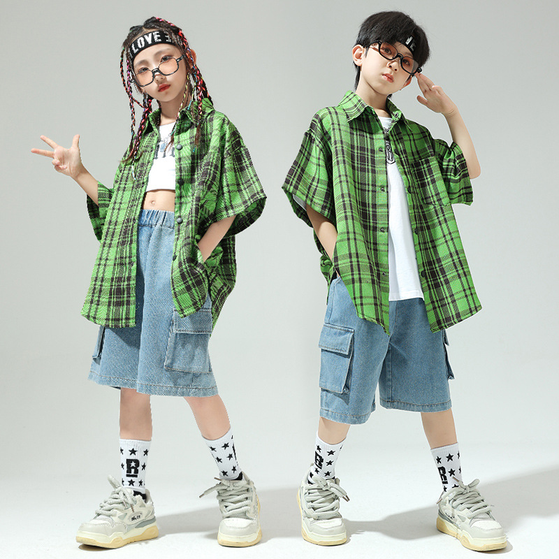 Pakaian Merek Trendi Hip Hop Anak-Anak Pakaian Pertunjukan Anak-Anak Lengan Pendek Musim Panas Hiphop Anak Laki-laki dan Perempuan Pakaian Pertunjukan Gaya Hip Hop Jalanan