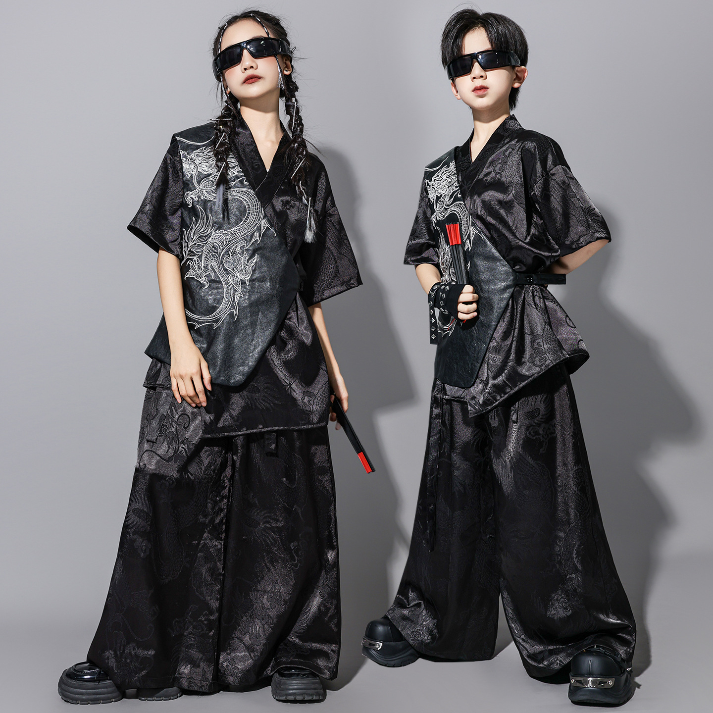 Pakaian Trendi Anak-anak Hip-hop Pakaian Pertunjukan Seni Bela Diri Gaya Tiongkok Hiohop Anak Laki-laki dan Perempuan Set Keren dan Tampan