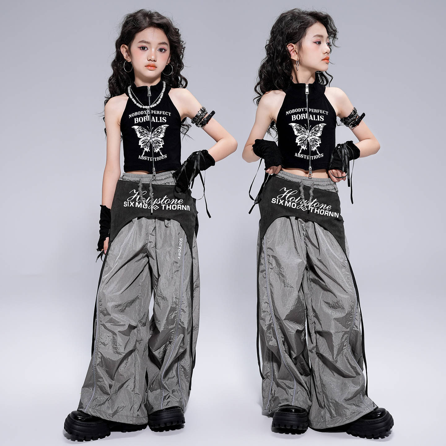 爵士舞服装女童露脐时髦短袖套装女孩少儿jazz舞蹈练功演出服街舞