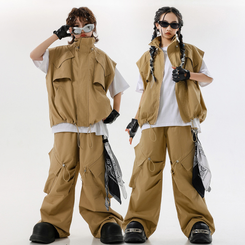 Pakaian Trendi Anak-Anak Tari Jalanan Pakaian Pertunjukan Gaya Gurun Hip Hop Setelan Rompi Anak Laki-laki Pakaian Pertunjukan Tampan Keren Anak Perempuan Hiphop