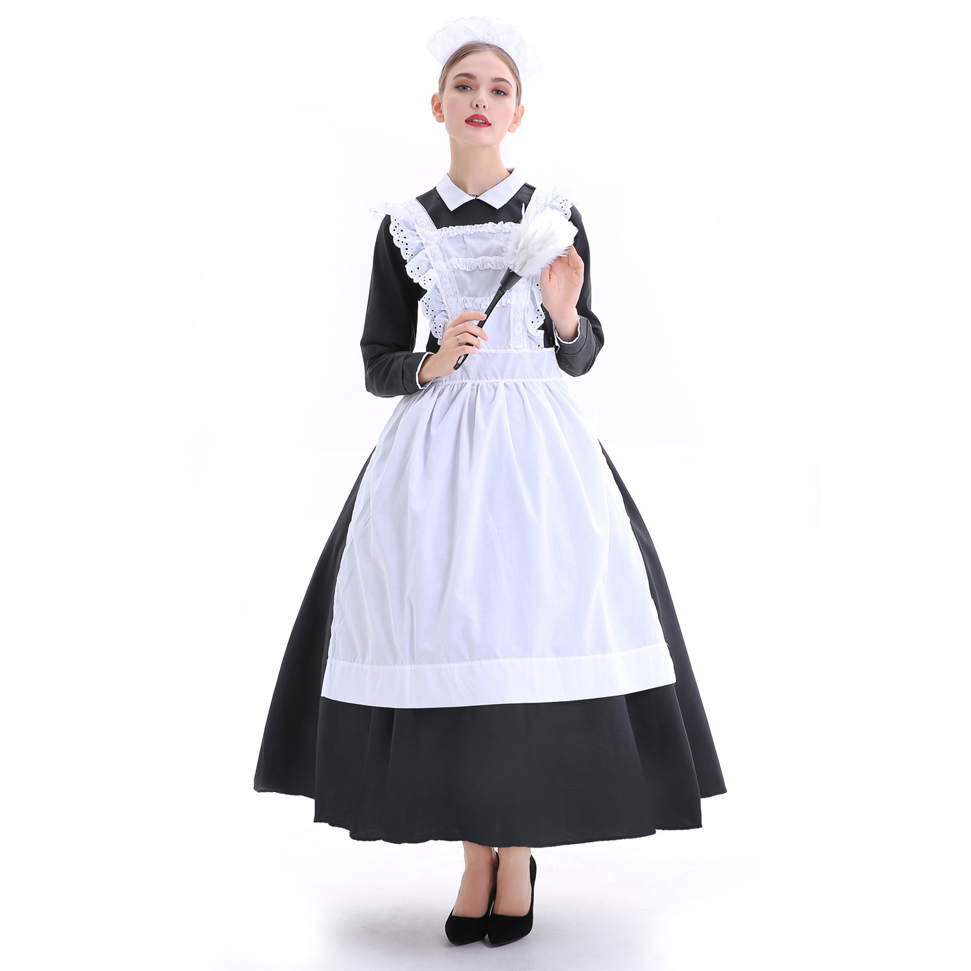 Kostum Pesta Saint, kostum pertunjukan panggung, kostum pelayan Perancis, kostum peran pelayan