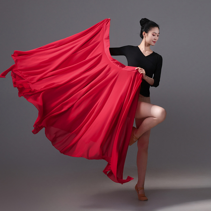 Square Xizang Dance Practice Rok Besar Sifon Satu Potong Pakaian Pertunjukan Panggung Tari Mongolia