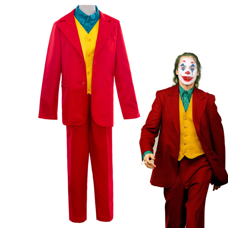 Kostum panggung, cosplay film badut Joker, setelan merah, kostum pentas bermain peran