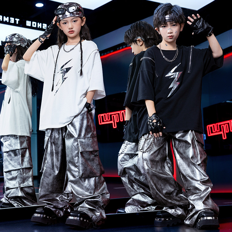 Pakaian dansa jazz hip hop anak-anak setelan model fashion anak perempuan jalanan goreng pakaian penampilan panggung T pentas pentas busana gadis keren