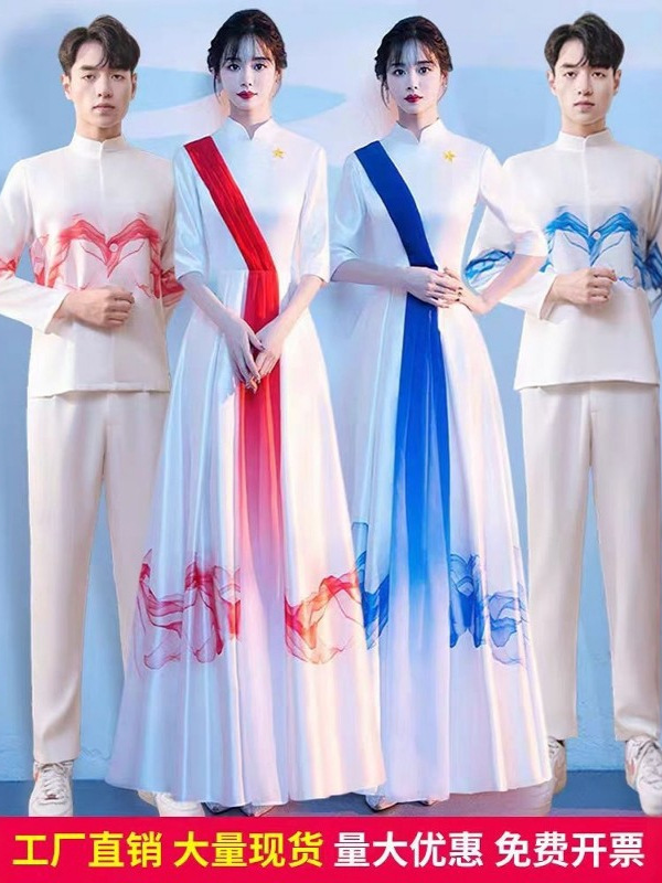 Pakaian Pertunjukan Paduan Suara Model Baru Gaya Tiongkok Gaun Pria dan Wanita Paduan Suara Menyanyikan Lagu Merah dan Puisi Membaca Pakaian Pertunjukan Panggung