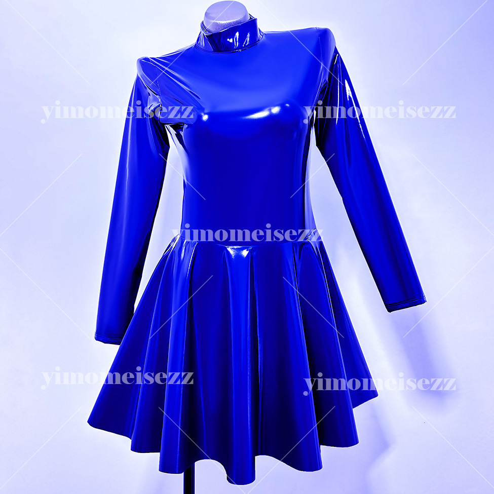 Gaun Ketat Pakaian Pemandu Sorak Pakaian Pertunjukan Pakaian Dalam Satu Tali Lengan Panjang Kerah Tinggi 053
