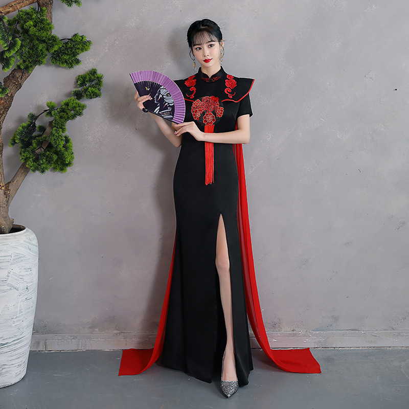 2025 Kostum Pertunjukan Gaya Tiongkok Model Baru Cheongsam Gaun Ekor Ikan Elegan Gaya Tiongkok yang Ditingkatkan dengan Elegan Kelas Atas Muda