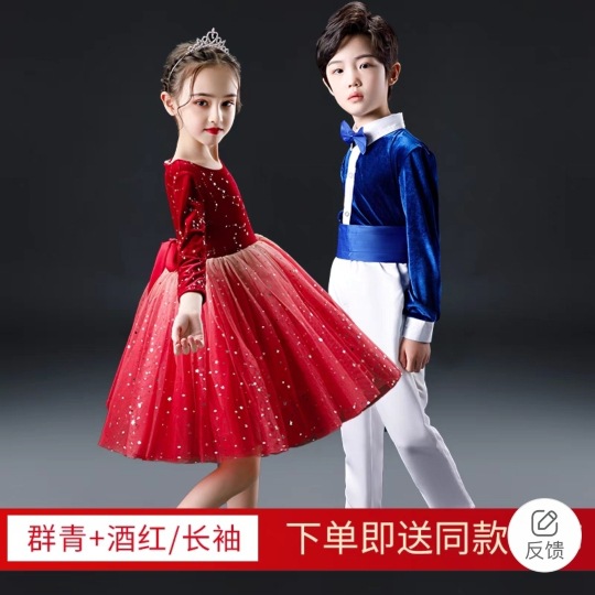Gaun pertunjukan kostum Chorus anak-anak rok tari anak perempuan Paduan Suara siswa sekolah dasar gaun kafan pria kostum penampilan 61