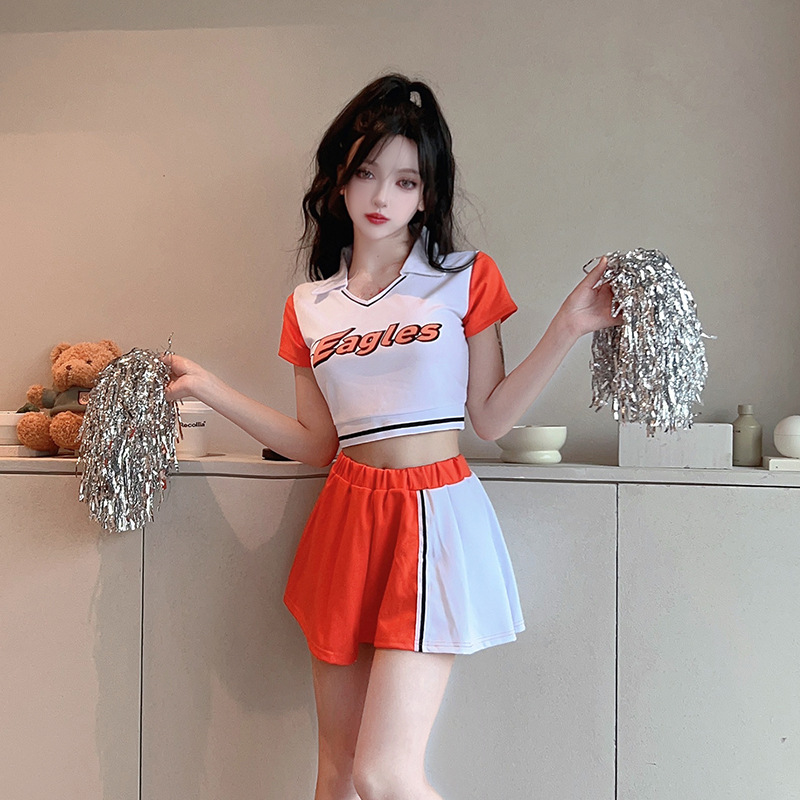 Pakaian pemandu sorak Korea pakaian penampilan tari jazz pakaian pemandu sorak rajutan setelan rok berlipat