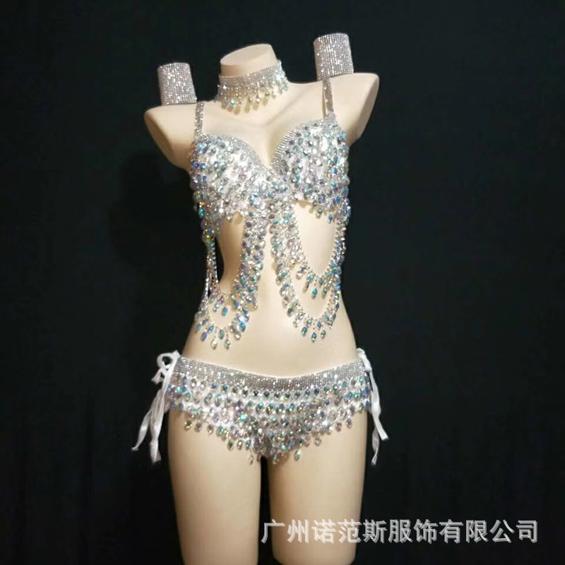 Pakaian Panggung Berongga Berlian Imitasi Rumbai Perak Unik Teknologi Keren
