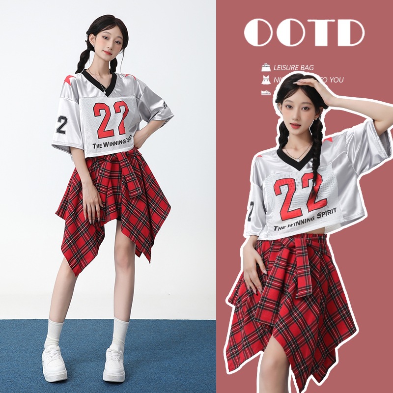 Set Pakaian Kompetisi Grup Pakaian Tari Cheerleader Permainan Olahraga Siswa Pakaian Pertunjukan Katun