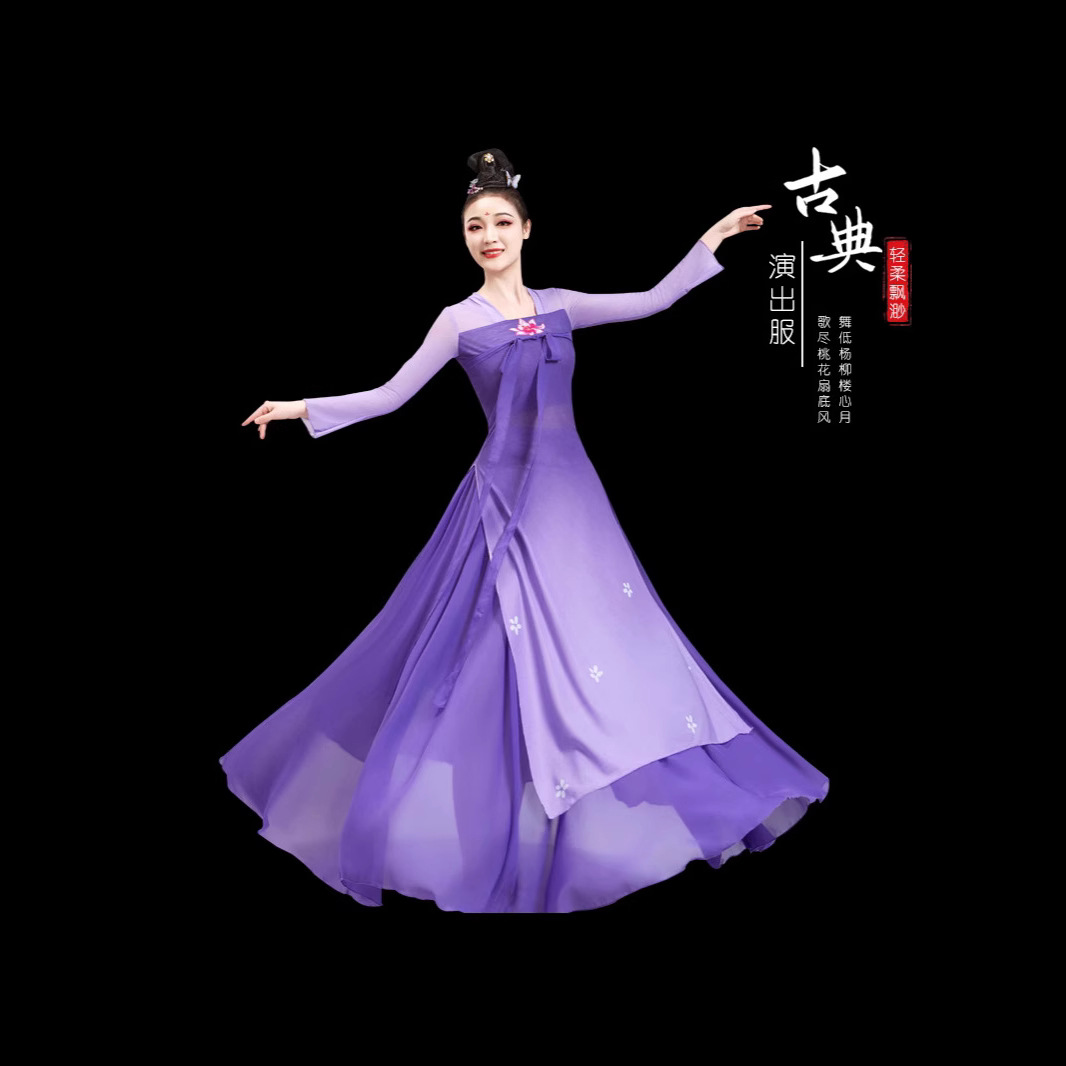 Pakaian Tari Klasik Anak Perempuan Pakaian Kasa Mengalak Han Tang Anak-anak Pakaian Latihan Pakaian Pertunjukan Tari Nasional Tari Tiongkok Rok Besar