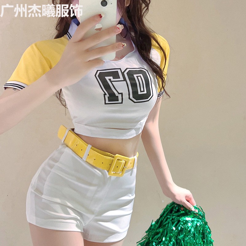 Kostum bernyanyi kelompok pertemuan tahunan setelan aerobik wanita pemandu sorak kostum pertunjukan tari bayi sepak bola