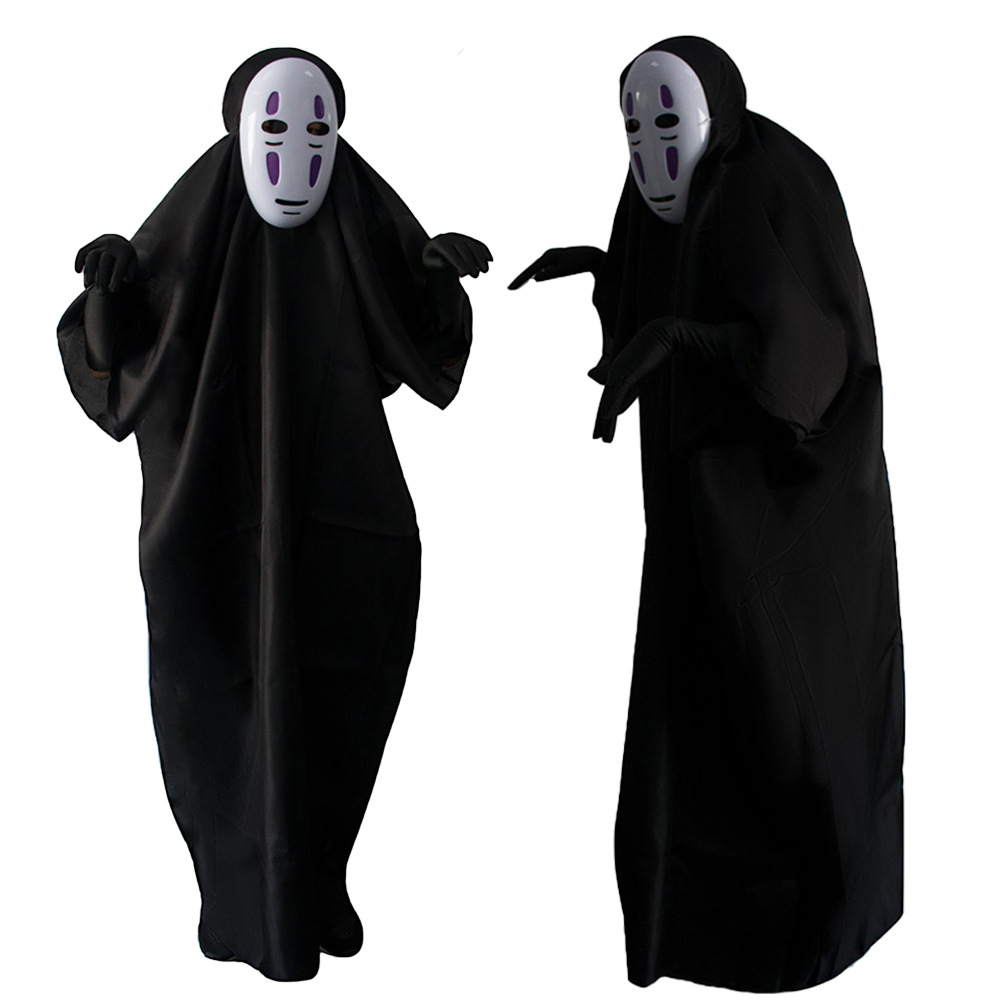 Kostum berdandan hantu horor pesta anak laki-laki tanpa wajah Halloween kostum hantu hitam kostum pertunjukan dewasa Qianxun