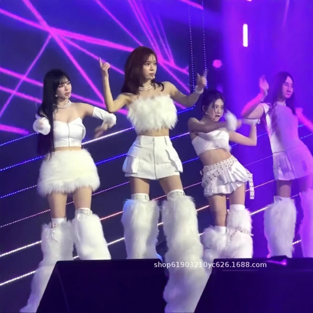 Aespa Pakaian Bernyanyi Model Sama dengan Grup Wanita Korea Pakaian Pertunjukan Panggung Pakaian Pertunjukan Tari Setelan Bulu Warna Putih Model Baru