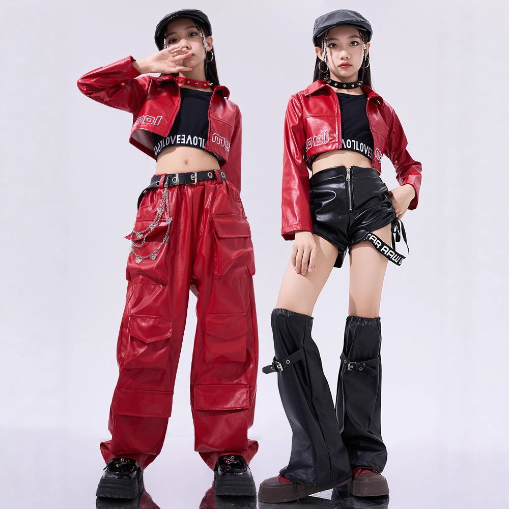 Pakaian Anak-anak Trendi Pakaian Anak Perempuan Ekor Pusar Bertopi Pakaian Kerja Celana Kulit Set Pakaian Kerja Pakaian Pertunjukan Tari Jazz Kelompok Anak Perempuan