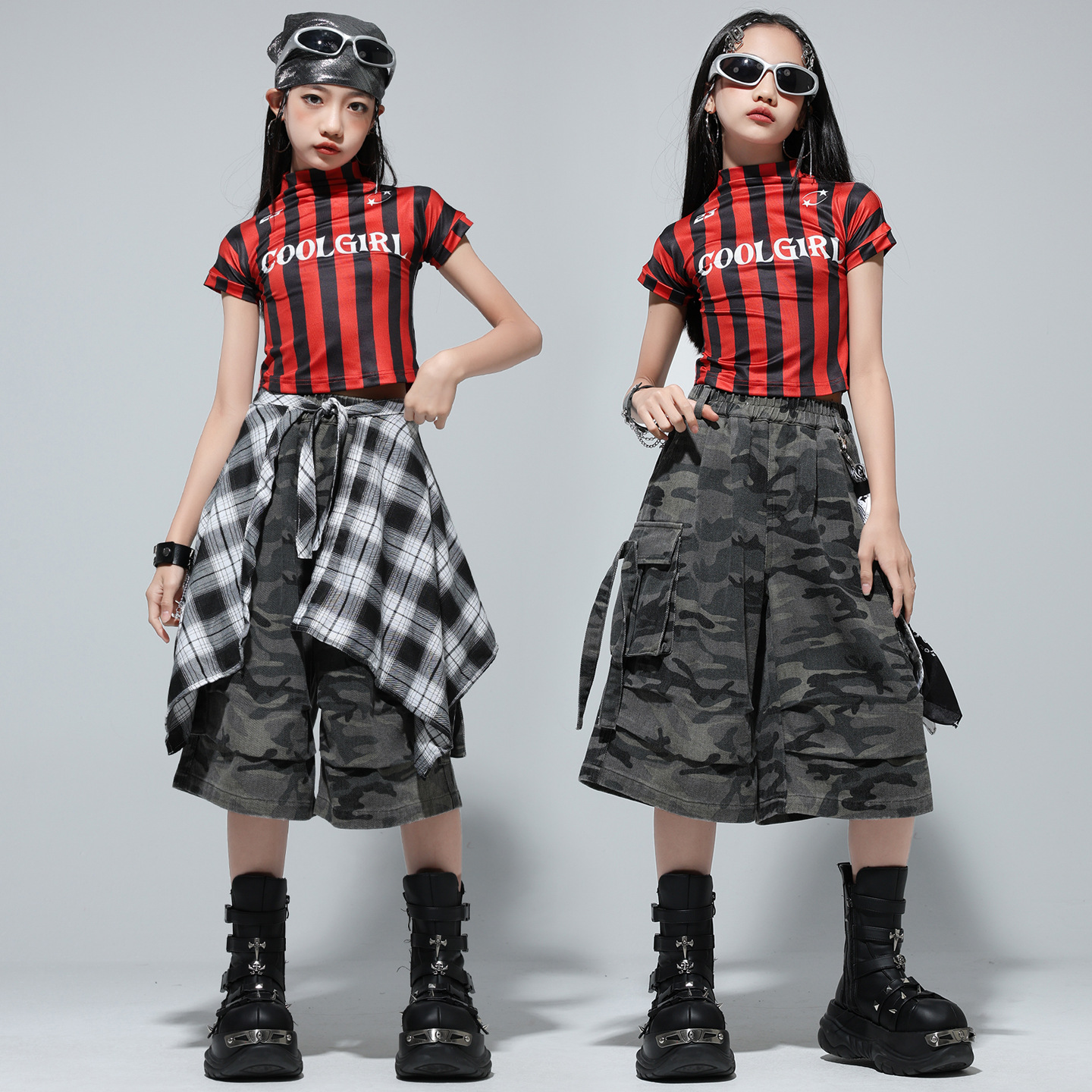 Pakaian Tari Jazz Anak Perempuan Pakaian Pertunjukan Panggung Grup Anak Perempuan Gaya Manis dan Keren Pakaian Trendi Tari Jalanan Gadis Modis