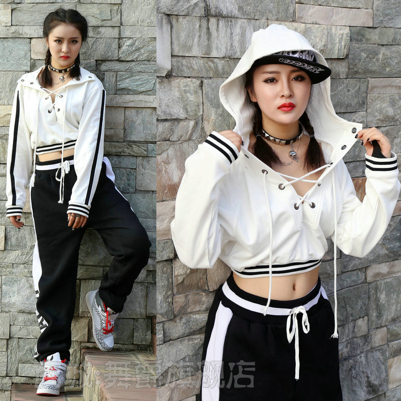Harajuku trendi gaya BF JAZZ dansa longgar sweater hip hop Hip Hop wanita hoodie dada renda terbuka pusar