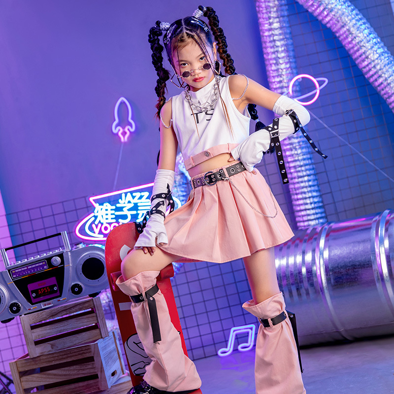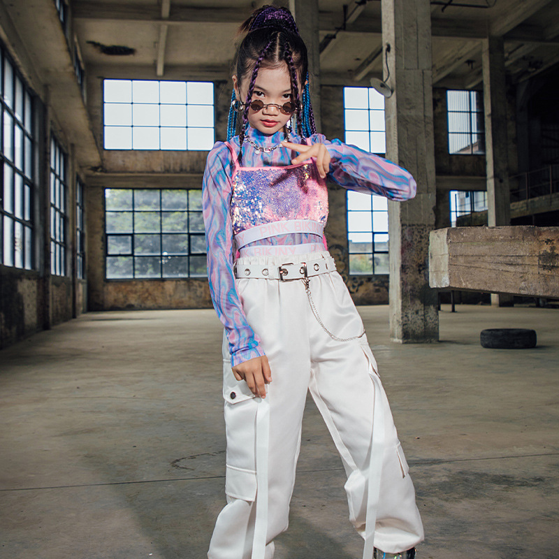 Pakaian fashion catwalk anak perempuan, pakaian pertunjukan fashion kulit cerah anak-anak, pakaian wanita jazz dansa keren hip hop jazz