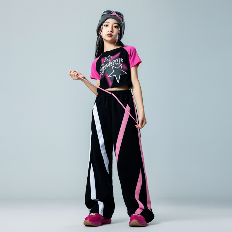 Baju penampilan modis untuk anak perempuan, pakaian dansa grup hip hop jazz, pakaian panggung T, pakaian modis untuk anak perempuan