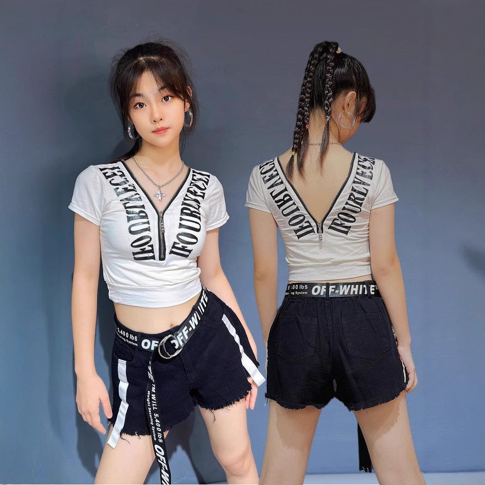 Pakaian Gadis Tari Jazz Setelan Modis Gadis Keren Trendi Pakaian Pertunjukan Tari Jalanan Gaya Keren Manis Rombongan Wanita Pertunjukan Musim Panas