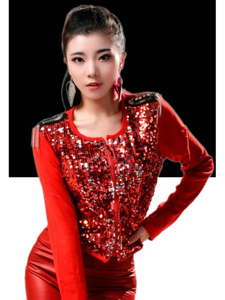Mantel pendek olahraga modis anak perempuan populer manis atasan jazz menari atasan jazz berpayet lengan panjang pakaian pentas Grup wanita