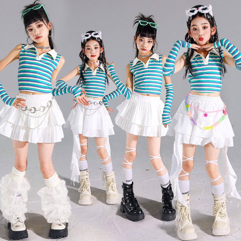 Kostum pertunjukan tari jazz anak perempuan, kostum model Hip hop grup wanita, kostum penampilan tari jazz, kostum mode