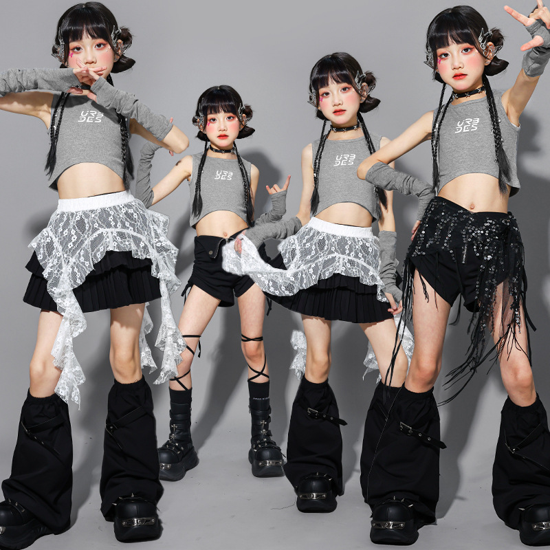 Pakaian Pertunjukan Tari Jazz Jazz Anak Perempuan Pakaian Hip-hop Anak Perempuan Grup Manis Keren Jalan Goreng Pakaian Anak Perempuan Pakaian Trendi