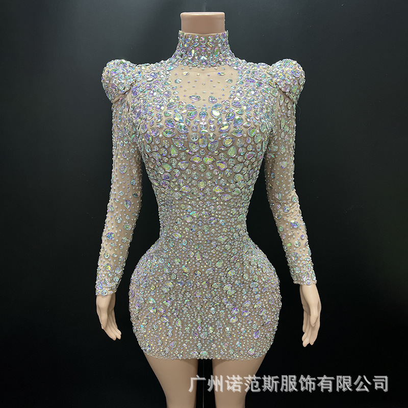 Gaun Menutupi Pinggul Seksi Kelas Atas Berlian Imitasi Warna-Warni Mewah Eropa Amerika Gaun Pesta Pakaian Pesta