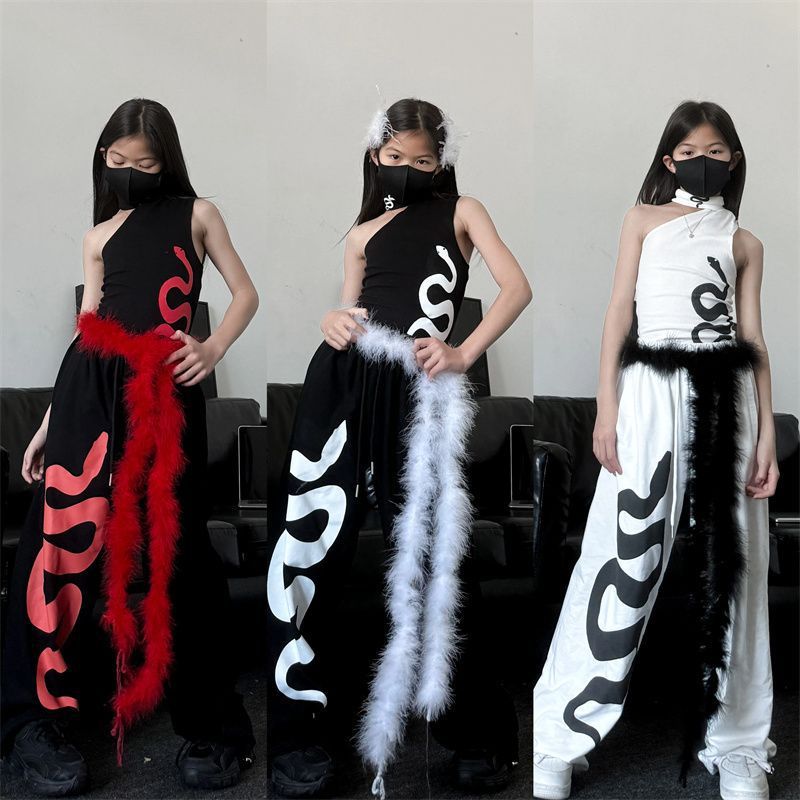 Set Rompi Tanpa Lengan Longgar Anak Perempuan Model Baru Musim Semi dan Musim Panas 2025 Pakaian Pertunjukan Tari Jazz Grup Wanita Keren Trendi Anak-Anak