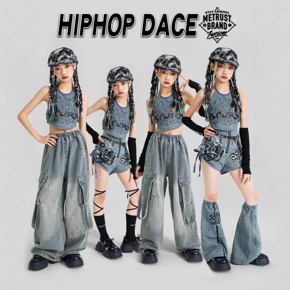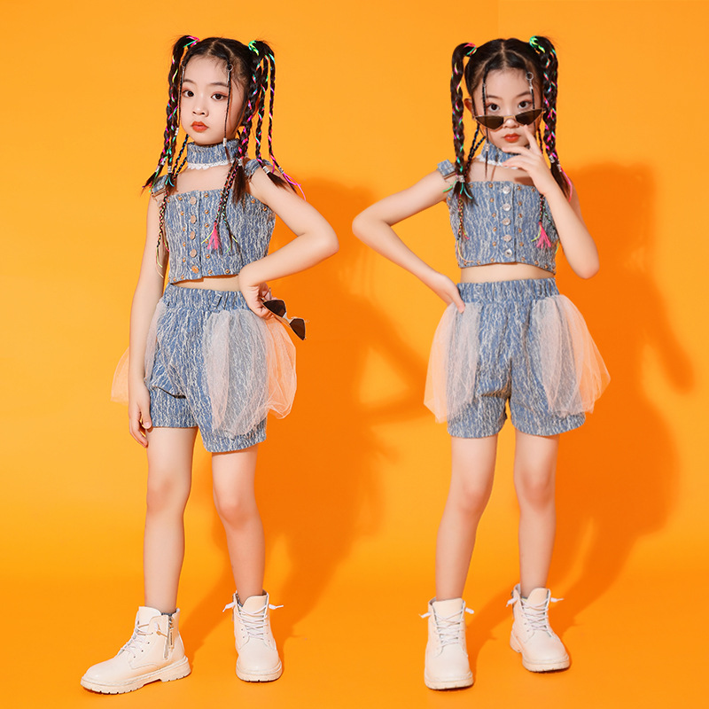 Pakaian Tari Jazz Anak Perempuan Pakaian Pertunjukan Kpop Tari Hip-hop Anak-anak Pakaian Kelompok Cowboy Anak Perempuan Pakaian Trendi catwalk