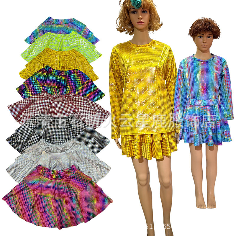 Rok payet laser houndstooth, kostum kinerja lintas batas, rok anak-anak dewasa, rok kue tiga lapis Grup wanita