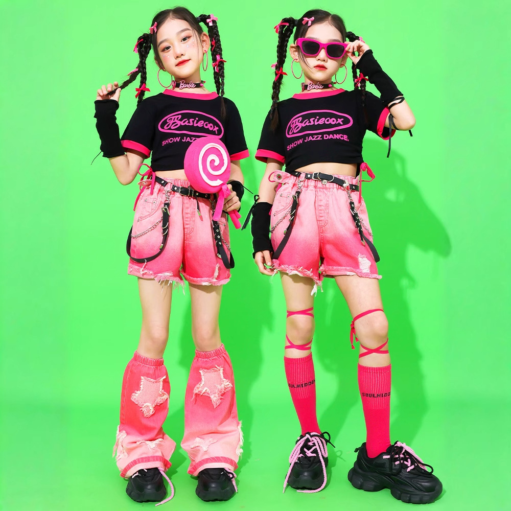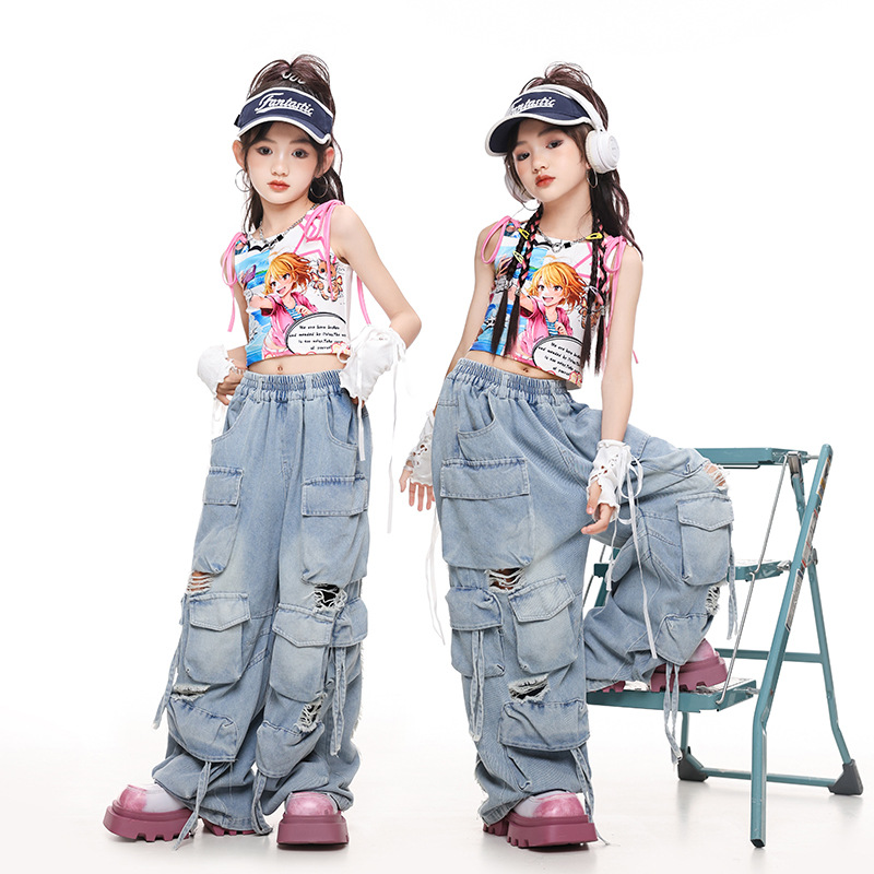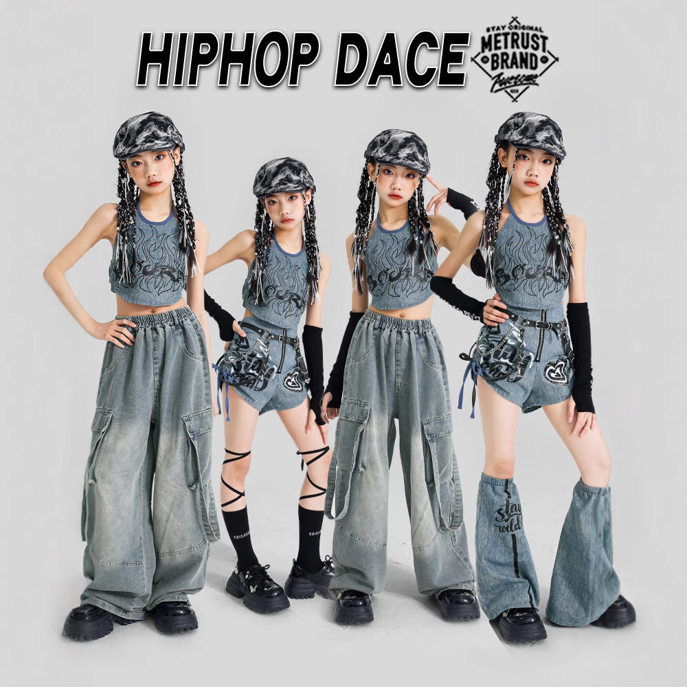 Pakaian Pertunjukan Tari Jazz Jazz Anak Perempuan Pakaian Pertunjukan Hip-hop Anak-anak Setelan Denim Anak Perempuan Pakaian Trendi
